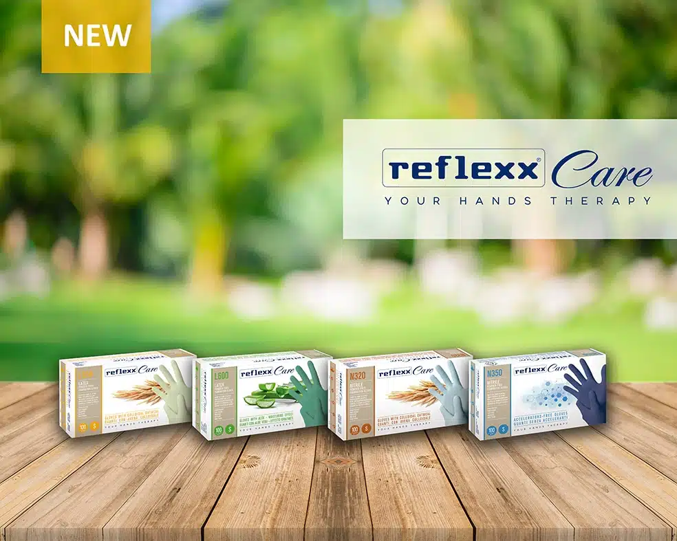 Alla prossima edizione del Colloquium Dental che si terrà a Montichiari (BS) dal 19 al 21 ottobre 2017, Reflexx presenta per la prima volta al mercato una importante novità: REFLEXX CARE, una linea di guanti monouso completamente nuova sia in termini di tipologia di guanti che di immagine, dedicata a tutti i soggetti che hanno problematiche di irritazione, arrossamento, gonfiore della pelle legato all’utilizzo di guanti tradizionali.